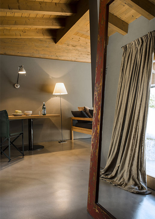 The Studio Junior Suite (40 sqm) faces east site and enjoys the first morning sun, like the South Suite, it is composed of, a bedroom with a king size bed, a living room with the possibility of having up to two comfortable sofa beds and a bathroom with a large shower. It is part of the suite as well as a large private garden (over 100 sqm) with direct access to the vineyard, furnished with deckchairs and an outdoor table. Unlike the South Suite, it does not have a kitchen, but is equally suitable for a family of 4. Below are all the available services.